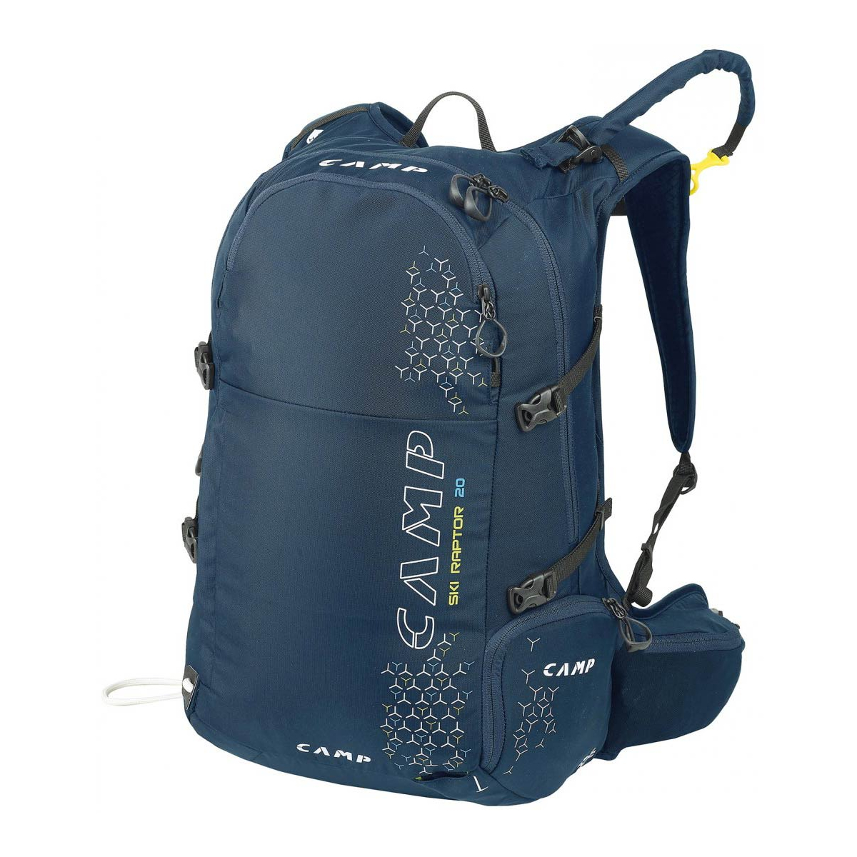 The 20 liter version of the Camp Ski Raptor pack is designed for lighter, faster freeride missions and for shorter athletes who probably have a hard time finding a freeride pack that fits their torso. The Ski Raptor builds on Camp's years of designing purpose-built packs for specific adventures. Utilizing design features from our benchmark skimo race packs, the Ski Raptor is a truly unique freeride pack. Constructed from 420D ripstop nylon for incredible durability. Updated ergonomics for an even more profiled fit and enhanced load stabilization. New ventilated back panel and external edging on the shoulder straps for increased comfort. Other popular features remain like the X-Press ski carrying system that allows skis to be attached and removed without removing the pack, Full BackDoor access that makes gear accessible independent of where it is layered in the pack, hide-away systems for carrying essential gear like poles, axes and helmet, and a dedicated side entry crampon compartment. The tail loop for the X-Press ski carrying system is updated so it can be set in two positions making it easy to insert skis whether the pack is fully loaded or mostly empty. Skis can also be carried laterally with straps on the sides. The crampon pocket is also updated with the addition of magnets to help make sure the pocket is easy to close without removing the pack.