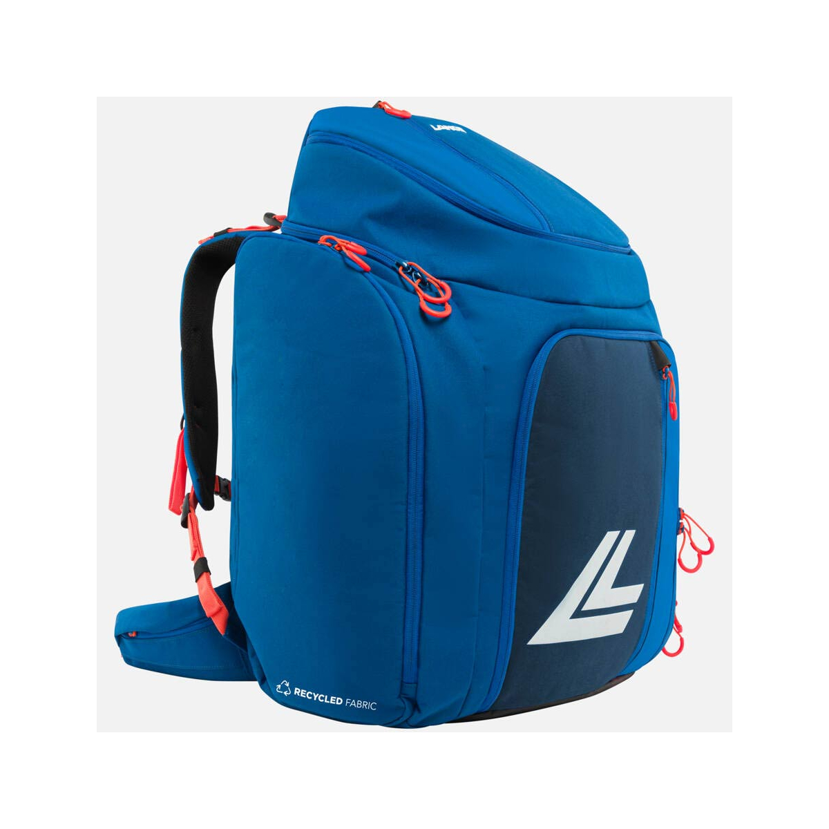 The Lange Racer Bag is a World Cup circuit, heavy-duty XL compartment gear, boot and helmet bag/backpack. Made with rugged 600D Polyester and PVC, zippered internal side boot compartments, helmet pouch, fleece lined goggle pocket. Massive internal storage for the rest of your gear offers easy access from the top, front or back of the bag. Padded anatomical backpack shoulder, sternum and waist straps offer maximum support so you can lug all of your gear with ease.