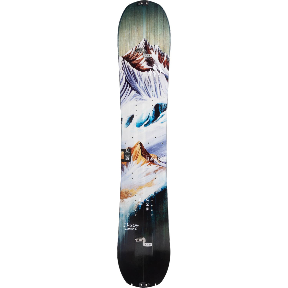 The Jones Dream Weaver women's splitboard is a high performance splitboard with a friendly flex. It’s the ideal split for backcountry riders looking for a playful board that’s easy to ride in any terrain or any snow condition.