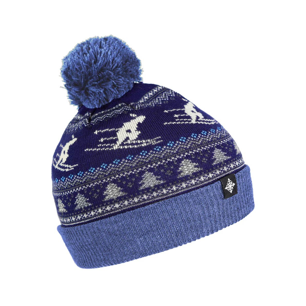 Ski the East's Suzy Pom beanie is a work of art for your head. The vintage inspired jacquard pattern brings to life the classic turns you should be doing every time you're at the mountain.