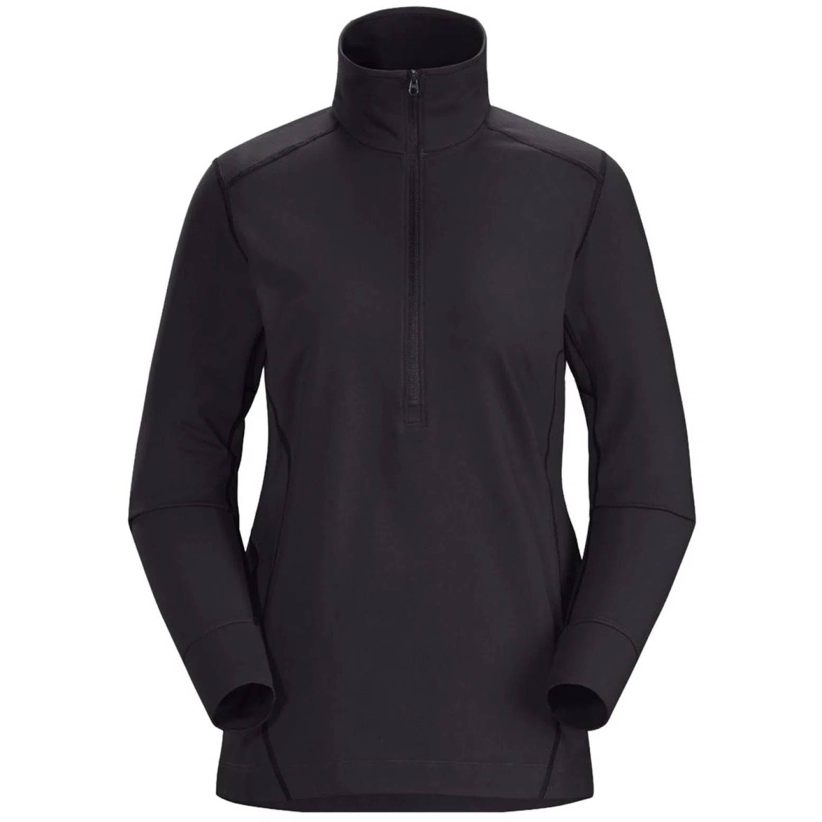 The women's Arc'teryx Rho LT Zip Neck top is a super comfortable baselayer for activities in cool to cold temperatures. The Rho LT is a comfortable, warm baselayer for lower output activities in cool temperatures. The moisture wicking Torrent™ brushed polyester blend fabric delivers performance stretch and effective thermal regulation with an excellent feel next to the skin. Articulated patterning and gusseted underarms add freedom of movement, flatlock seams minimize irritation, the tall collar seals in warmth, and the deep zip neck opens easily for rapid ventilation.